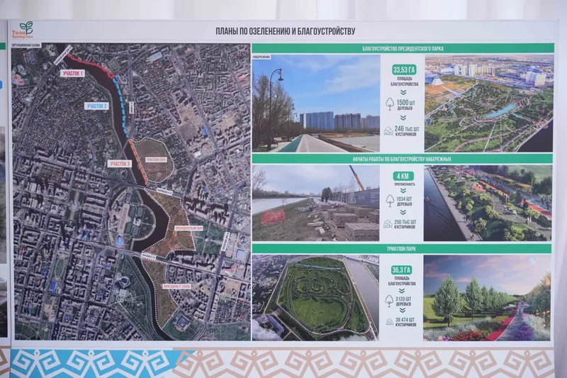 Фото: akorda.kzРаботы охватят исторические улицы, президентский парк, правительственный квартал, набережную реки Есиль, аллею "Мыңжылдық", триатлон-парк, бульвар Greenline, Линейный парк, привокзальную территорию, Парк иллюзий, улицы Сыганак, Ш. Калдаякова, Гете, Биржан Сала и другие. Также будет продолжена очистка русла реки Акбулак. Кроме того, начнется реконструкция спортивного комплекса "Казахстан".