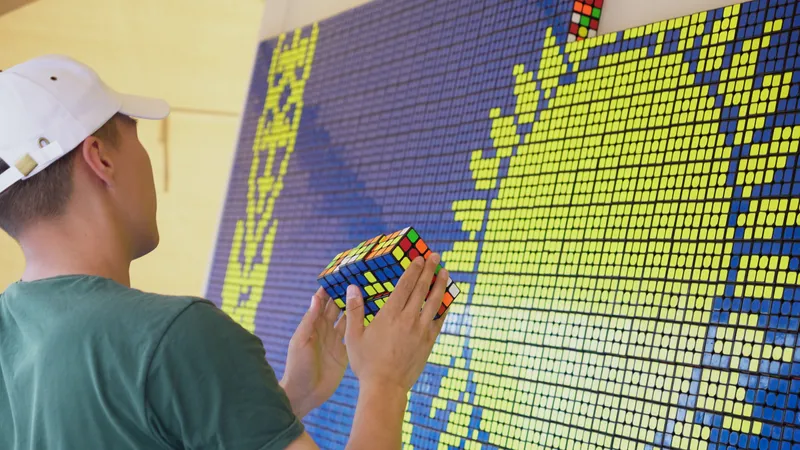 Алихан Ертурсын рассказал, что увлечение кубиком Рубика началось у него десять лет назад, когда ему было всего десять. Сегодня, в свои двадцать, он уже не просто решает головоломку на скорость, а вместе с командой превращает ее в искусство."Первые, кто начал собирать картины из кубиков, конечно, были американцы и европейцы. Мы взяли эту идею и адаптировали под наш менталитет – начали складывать из кубиков портреты известных личностей, государственные символы, флаг. Все началось с Федерации спидкубинга, которой сейчас исполнилось пять лет. На юбилей мы и решили попробовать собрать первую большую мозаику. Так наше хобби превратилось в способ творчески говорить со зрителем", – поделился Алихан.